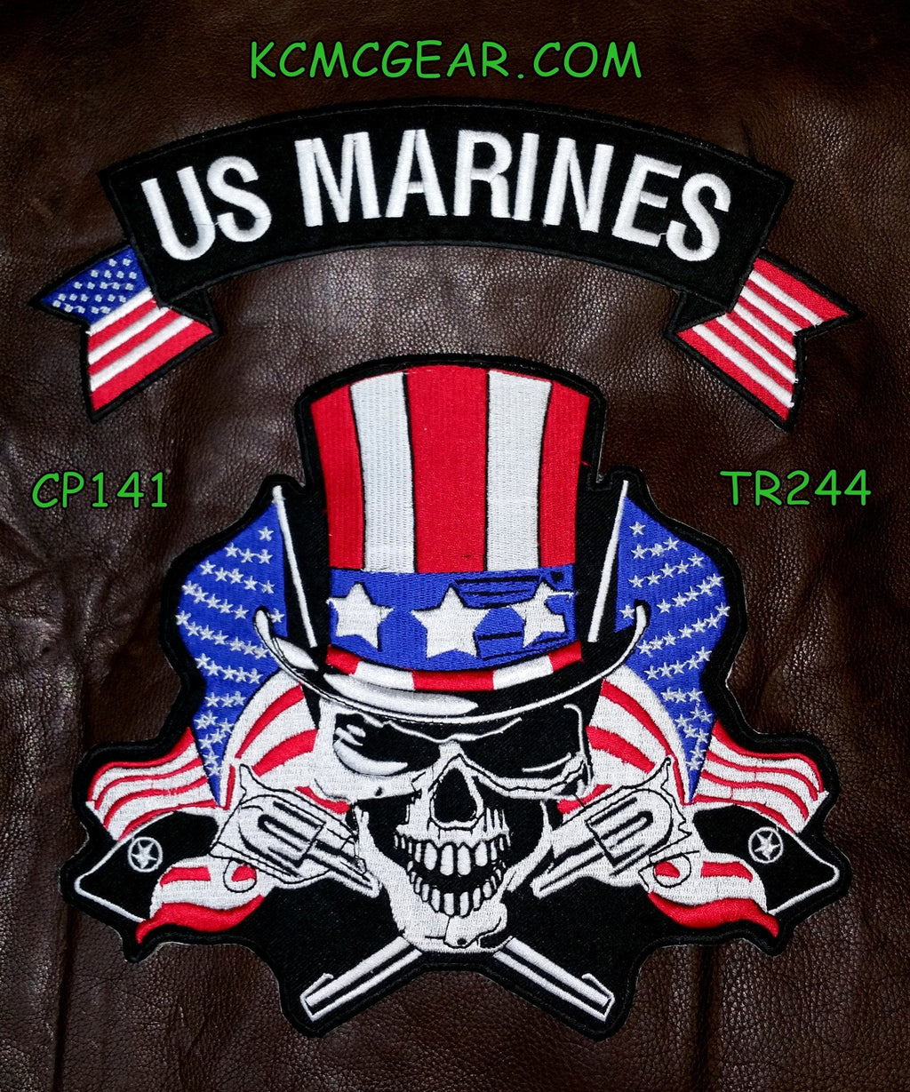 U.S Marines Skull & Flags Patches Set Embroidered for Biker Vest Jacket.