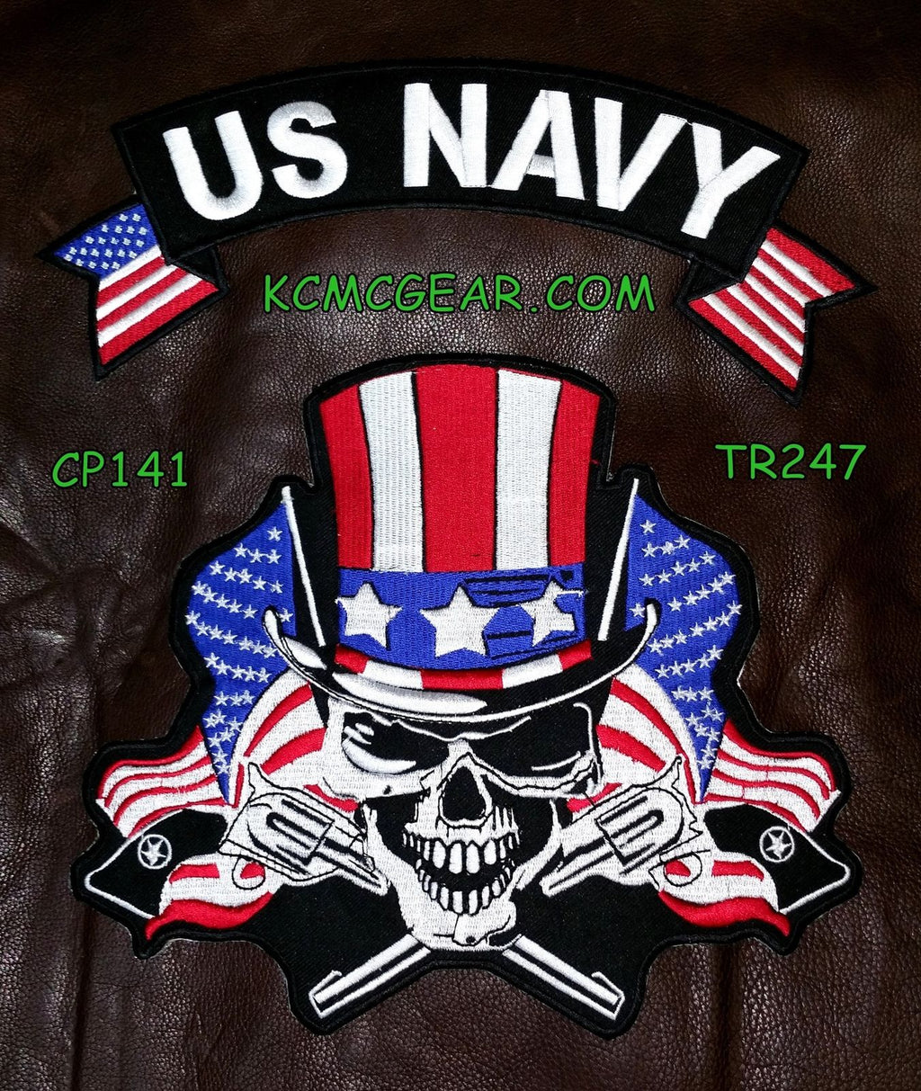 U.S. Navy Skull & Flags Patches Set Embroidered for Biker Vest Jacket.