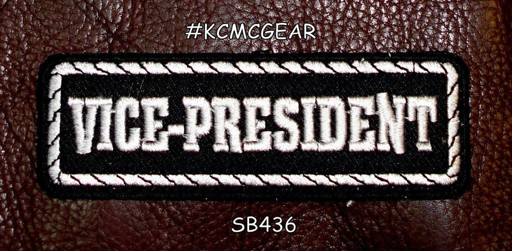 Vice President White on Black Small Patch Iron on for Biker Jacket Vest SB436.
