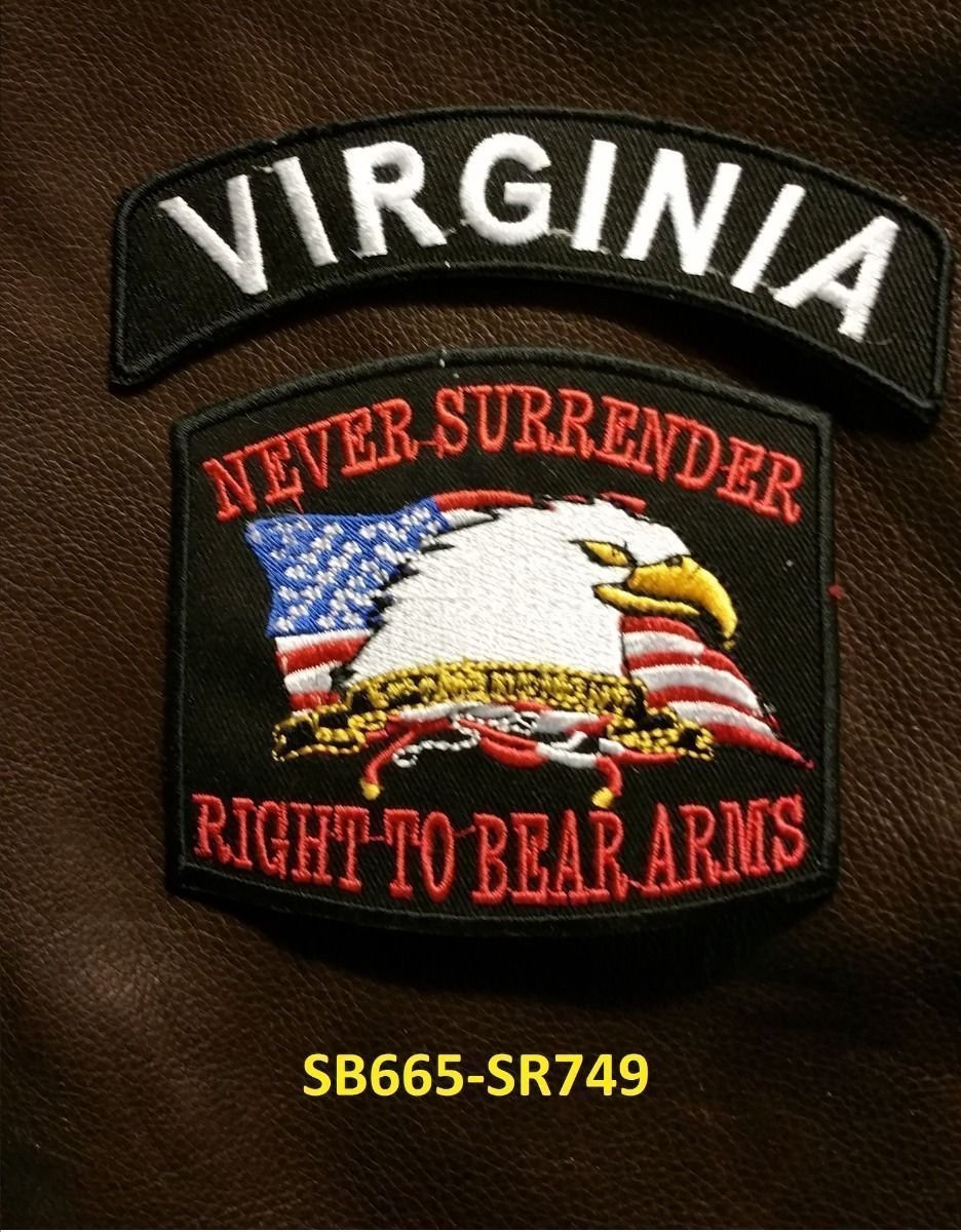VIRGINIA and NEVER SURRENDER Small Patches Set for Biker Vest.
