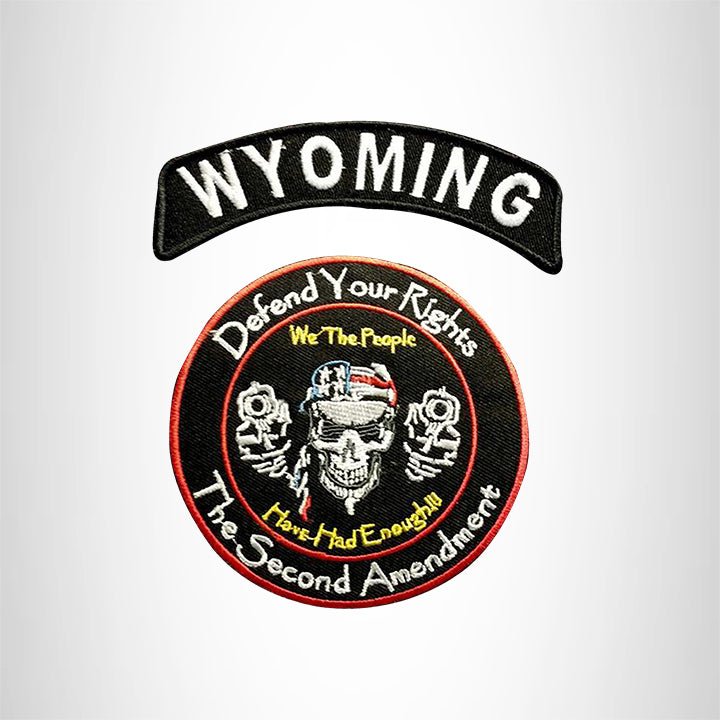 WYOMING Defend Your Rights the 2nd Amendment 2 Patches Set for Vest Jacket.