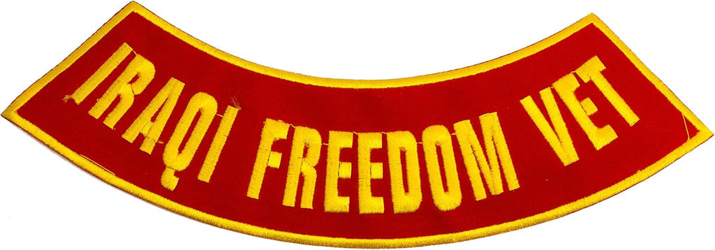 IRAQI FREEDOM VET Yellow on Red w/Boarder Iron On Sew On Bottom Rocker Large Back Patch for Jacket Vest