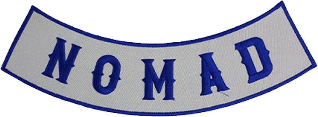 NOMAD Blue on White w/Boarder Iron On Sew On Bottom Rocker Large Back Patch for Jacket Vest