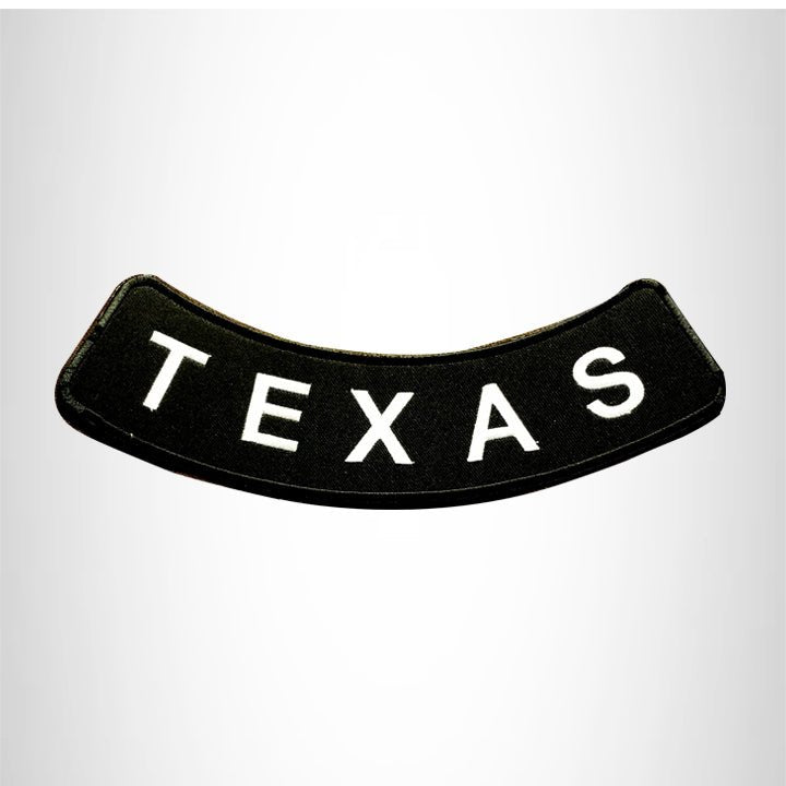 TEXAS White on Black Bottom Rocker Patch for Vest Jacket BR373