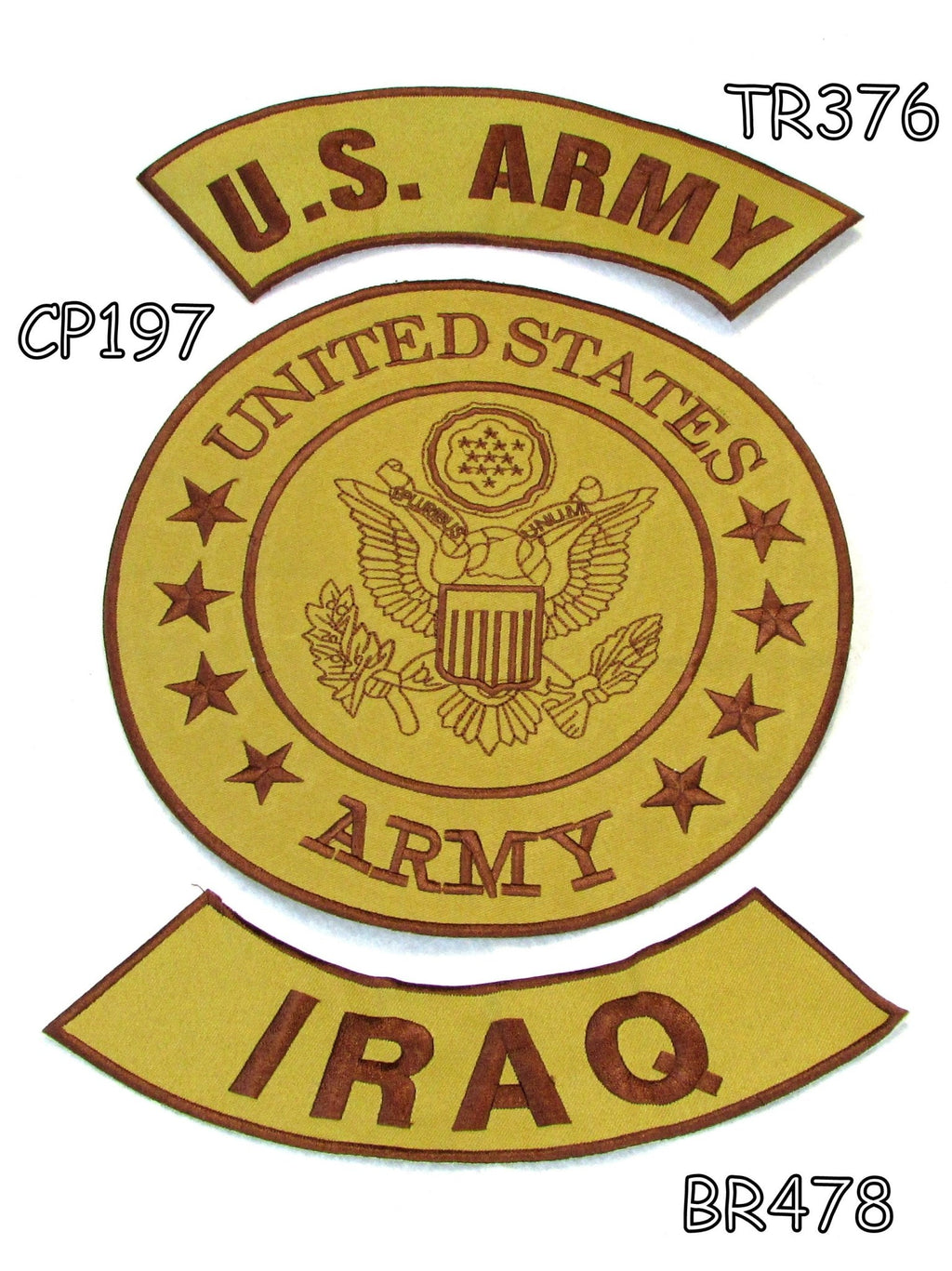U.S Army Iraq Iron on Sew on Patches Set for Biker Jacket Vest Size TR 12 x 3 inch, CP 10 inch Round, BR 12 x 3 inch. Iron on patch for jacket, vest, or shirt.