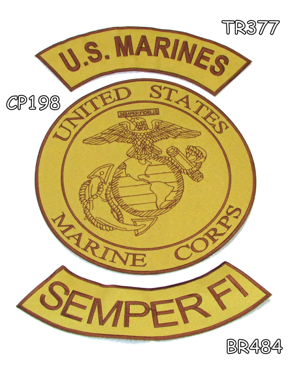 U.S Marines Semper FI Iron on Sew on Patches Set for Biker Jacket Vest Size TR 12 x 3 inch, CP 10 inch Round, BR 12 x 3 inch. Iron on patch for jacket, vest, or shirt.