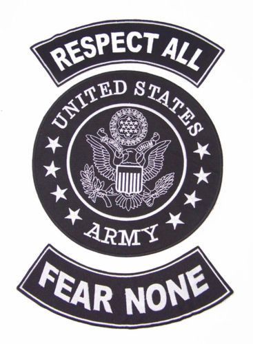 U.S ARMY RESPECT ALL FEAR NONE Iron on 3 Large Back Patches Set for Biker Vest Jacket