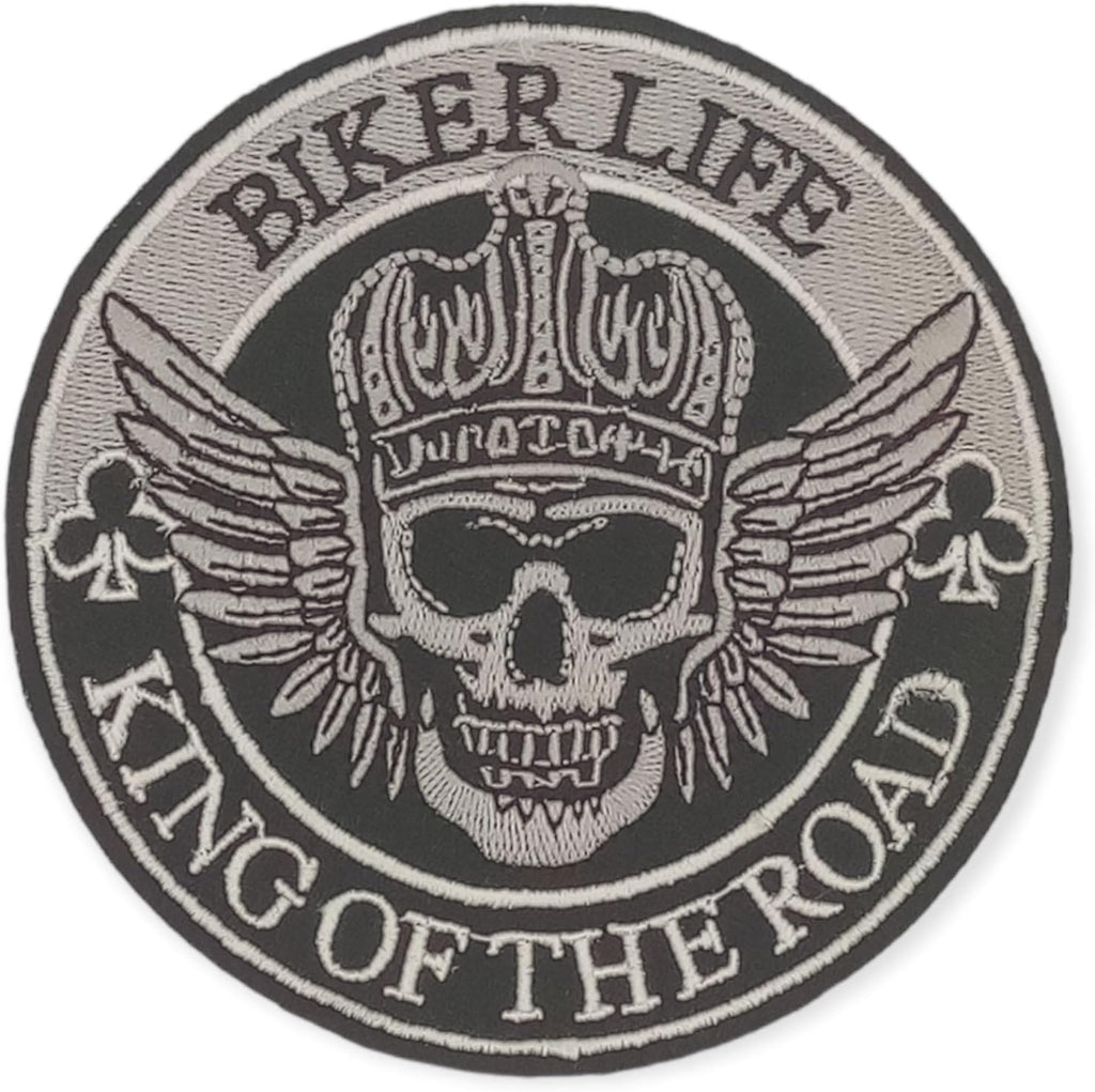 Biker Life King of The Road Silver and white on black Iron On Sew On Small Patch for Jacket Vest