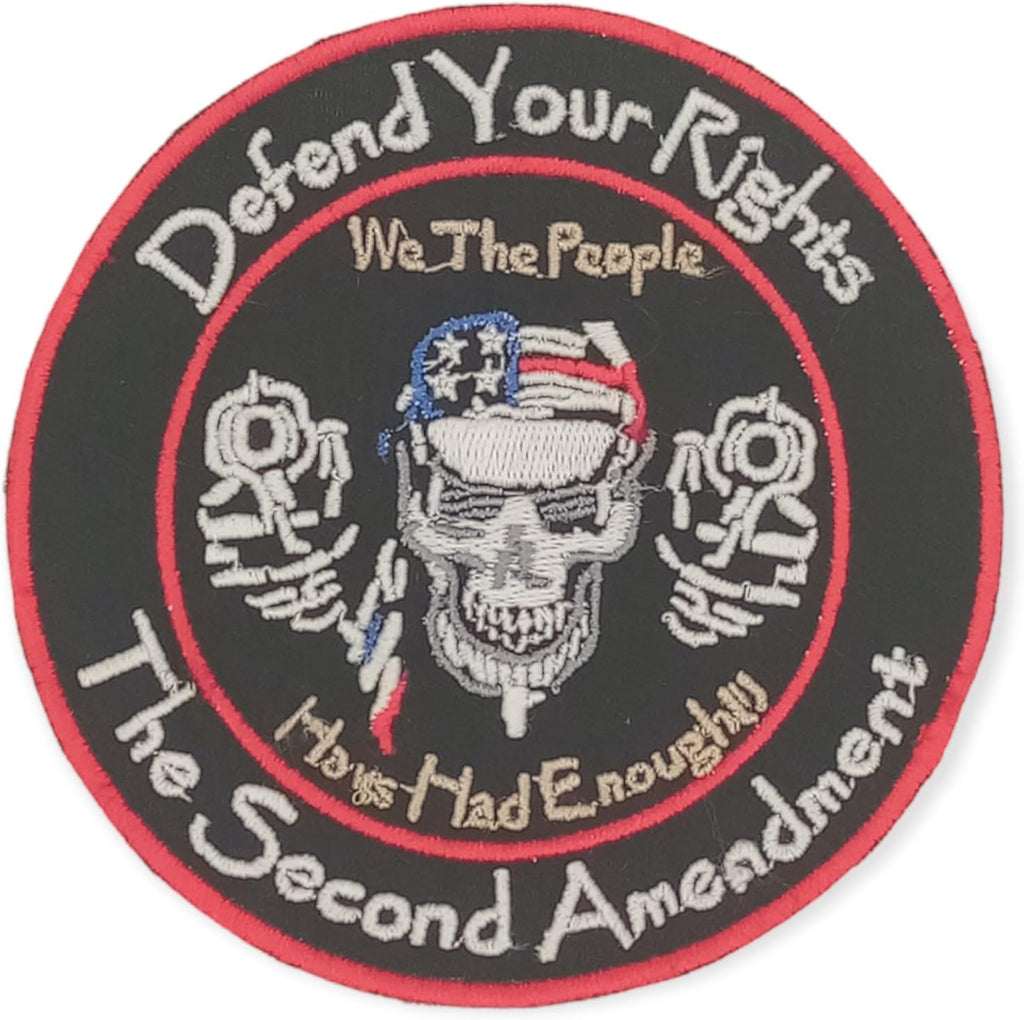 Defend your Rights The Second Amendment roundRed white blue yellow on black Iron On Sew On Small Patch for Jacket Vest
