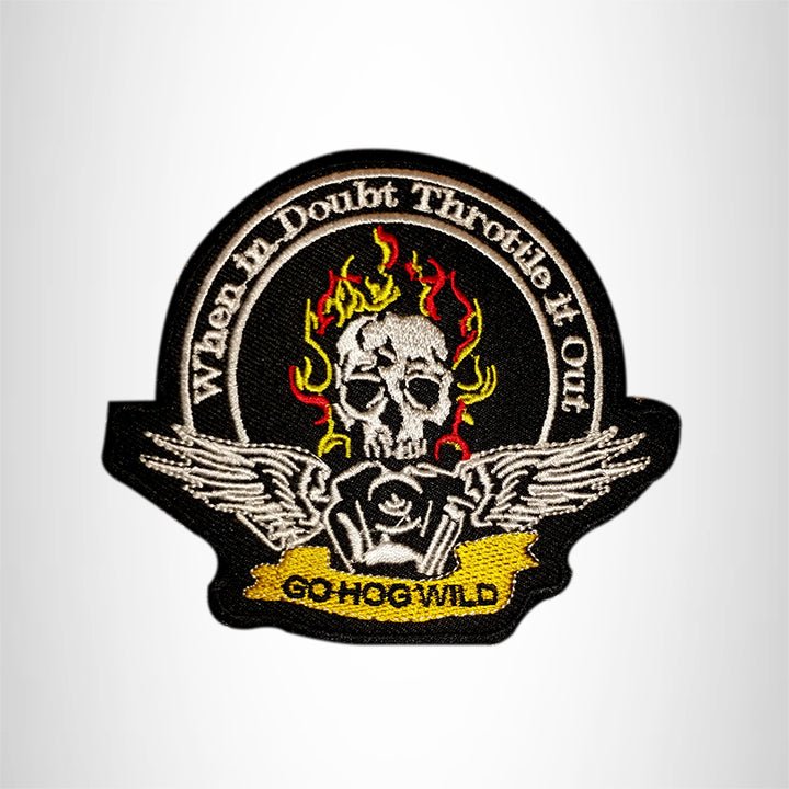 GO HOG WILD Flaming Skull Small Patch Iron on for Vest Jacket SB612