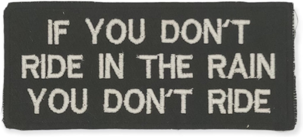 If You don't Ride in The Rain White on Black Iron On Sew On Small Patch for Jacket Vest