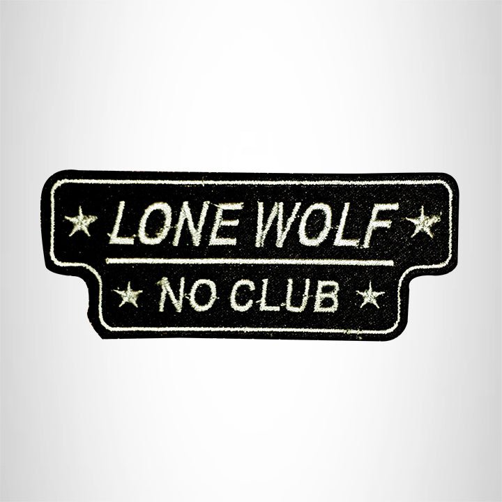 LONE WOLF NO CLUB White on Black Small Patch Iron on for Vest Jacket SB629