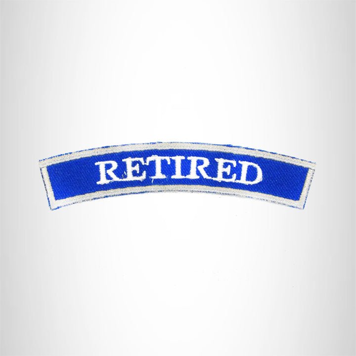 RETIRED White and Blue Iron on Small Patch for Biker Vest SB884