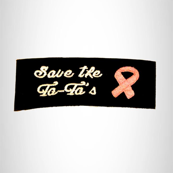 Save the Ta-Ta's Pink and White on Black Small Patch Iron on for Biker Vest SB822