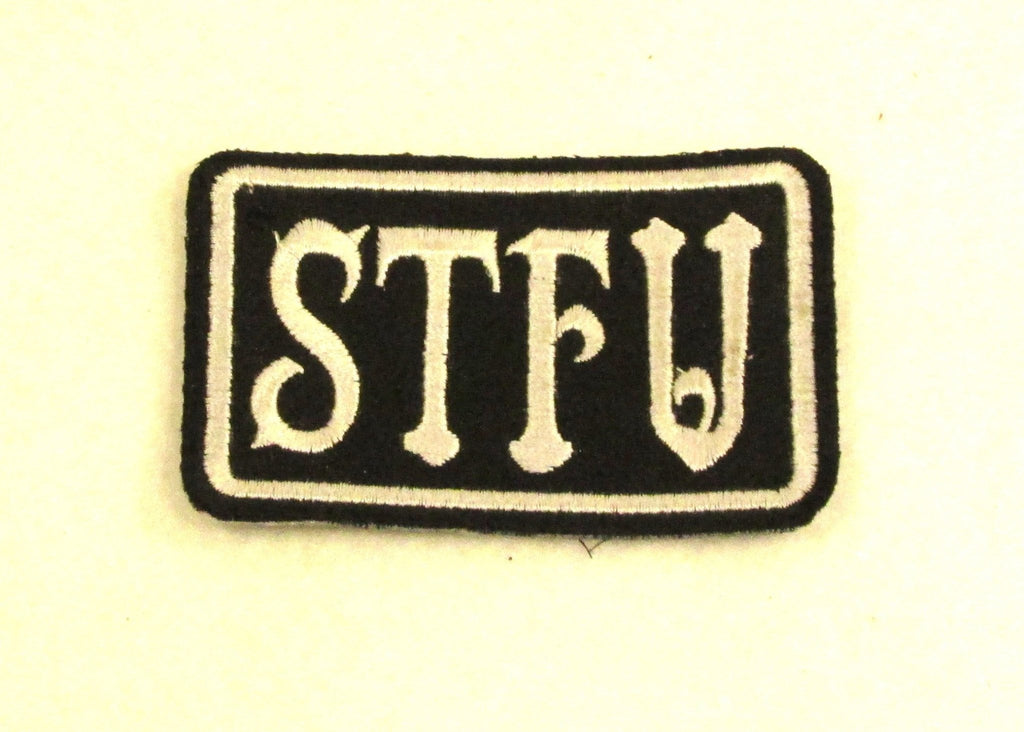 STFU White on Black Iron on Small Patch for Biker Vest SB845
