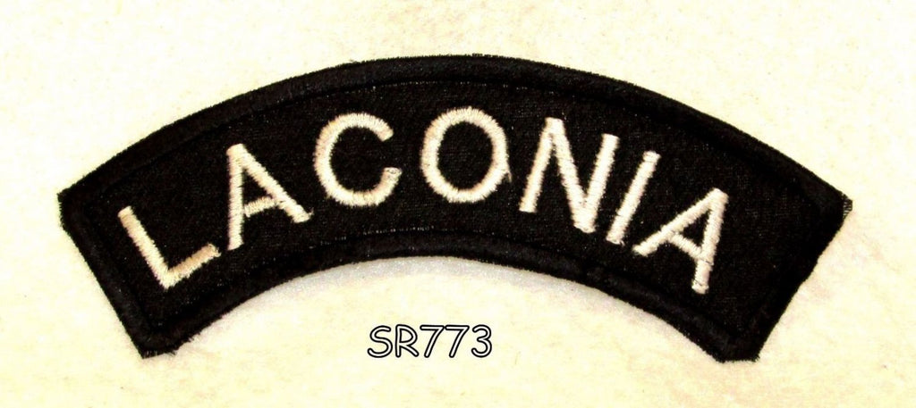 Laconia State White on Black Small Rocker Patch Front for Biker Jacket Vest.