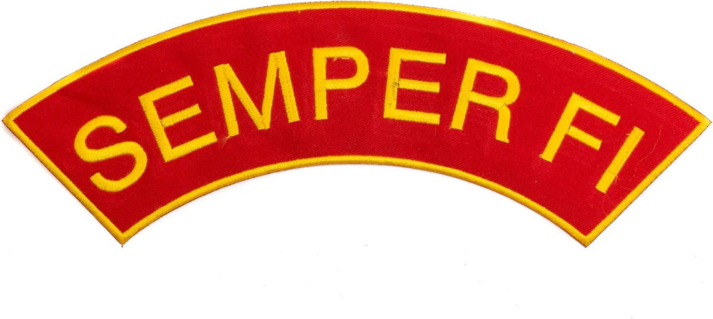 SEMPER FI Yellow on Red w/Boarder Iron on Top Rocker Patch for Jacket Vest